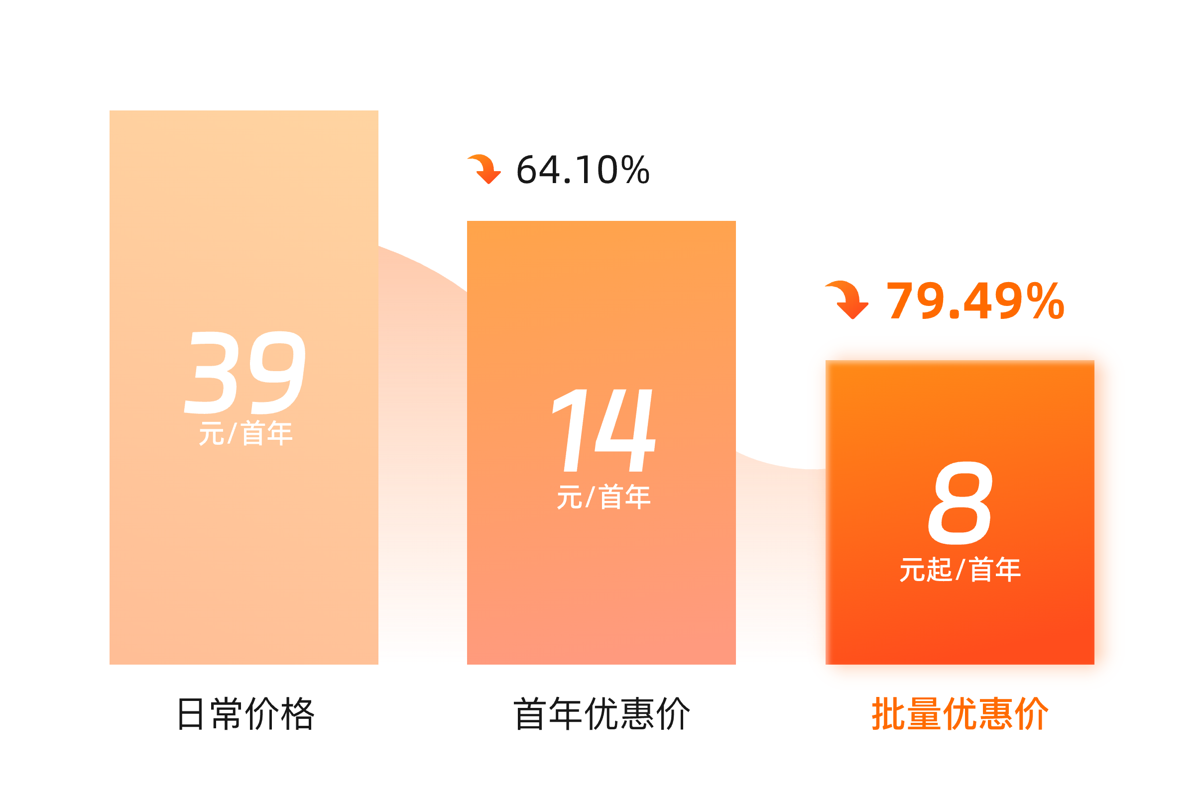 说明:首年优惠价格降幅计算方式为本次降价后首年价格相比日常价格的降幅,批量优惠价降幅计算方式为批量优惠价相比日常价格的降幅。